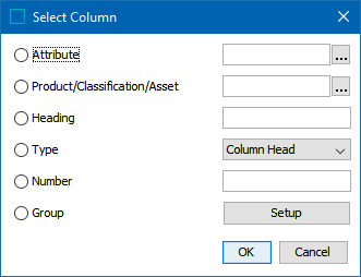 ) to launch another Select Column dialog. This is identical to the previous 'Select Column' dialog, except without the Group option.