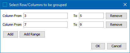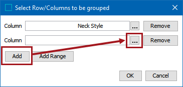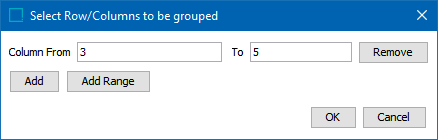 - On the Select Row/Columns to be grouped dialog, click Add Range.