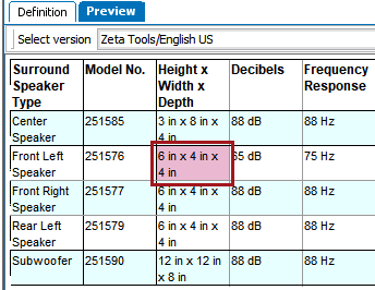 In the following example, the 'Height,' 'Width,' and 'Depth' columns will be merged using the Merge Rows/Columns transformation. Before the transformation is applied, a single pink cell appears in the 'Height' column, and all dimension values appear independently, each in their own column.