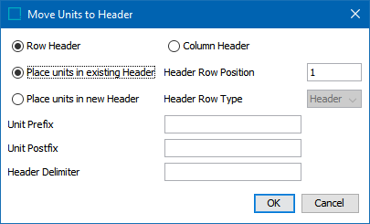 - Select Row Header to move the units to a header row. Select Column Header to move the units to a header column.