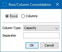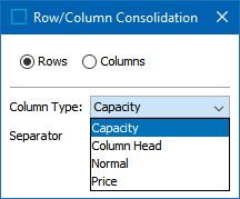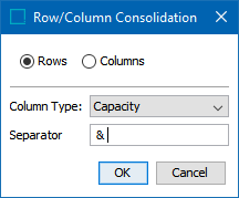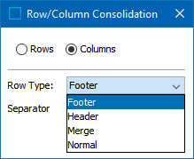 ). The Row/Column Consolidation dialog displays. Select Rows to merge rows, or select Columns to merge columns.