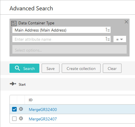 Data Container Type search for [Main Address]