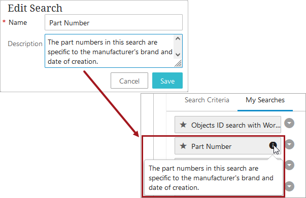 If a description was added, an information icon displays next to the name. The information icon only displays when a description is present.