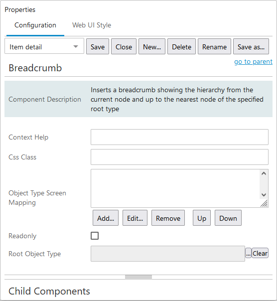 - Read Only- When checked, the elements that make up the breadcrumb navigation path will not be hyperlinked.