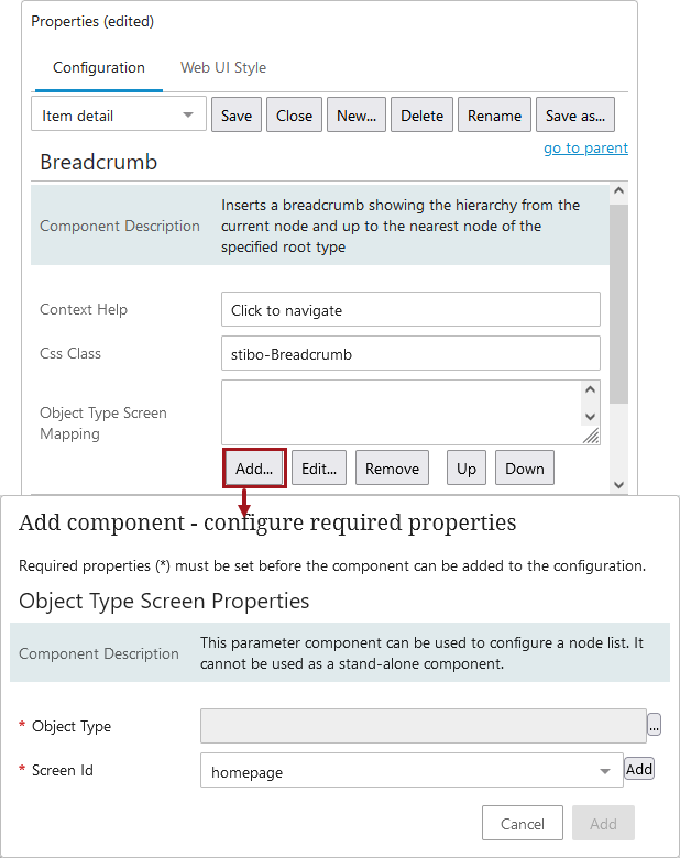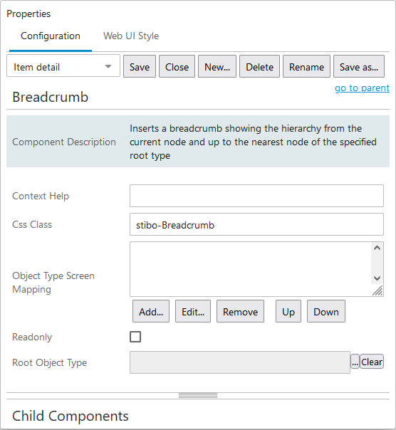 To configure display of the Breadcrumb component, follow the instructions described below.
