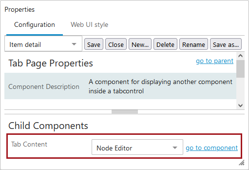 2. From the Tab Content dropdown, select the Node Editor and then click on go to component.