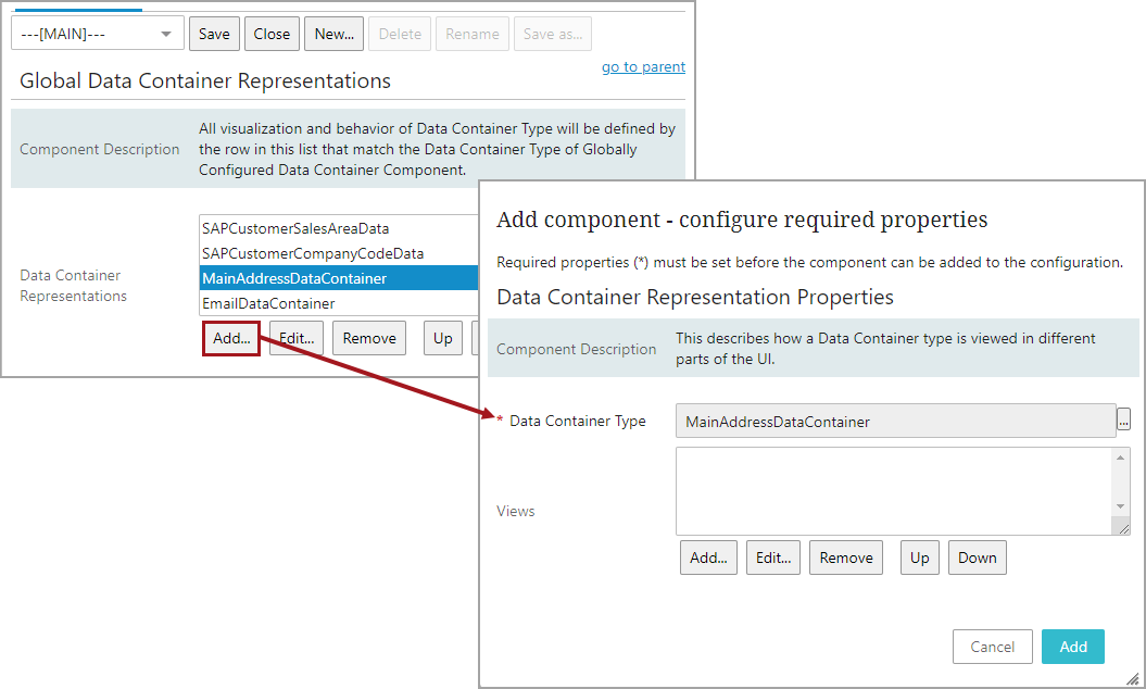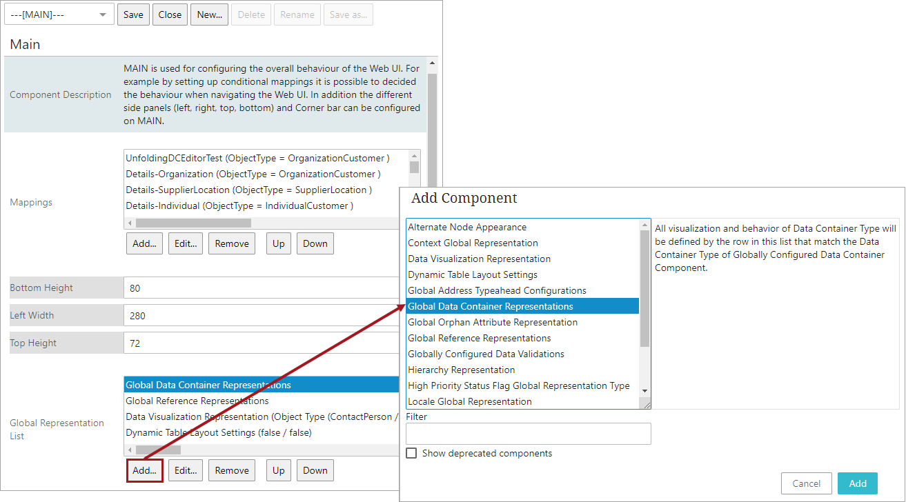 Select 'Global Data Container Representations' from 'Global Representation List' and click Add.