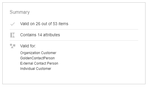 The Summary widget provides a brief overview of the attribute within the context of the data profile. Three particular data points are presented: