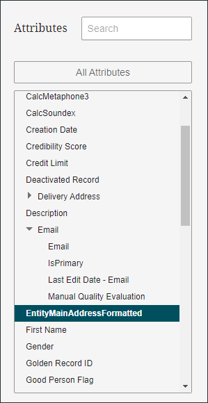Note: The search bar can be used to filter what attributes are displayed in the list for easy selection.