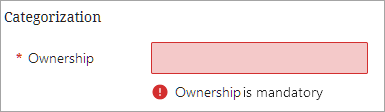 Mandatory objects, like the 'Ownership' attribute in the image below, are identified by: