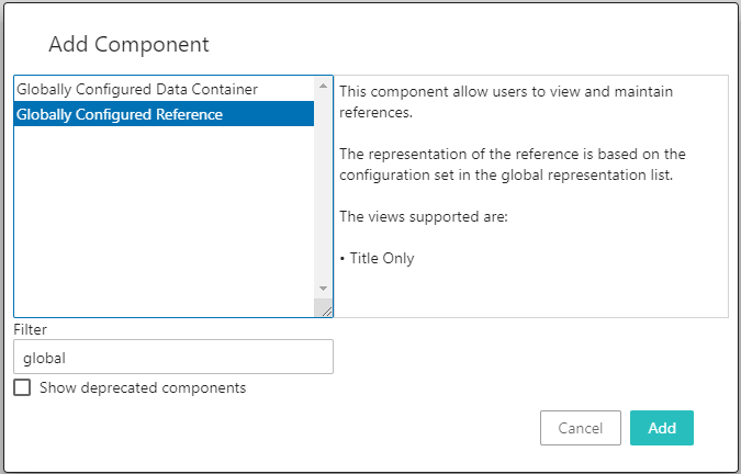 - Select Globally Configured Reference from the Add Component dialog, then click Add.
