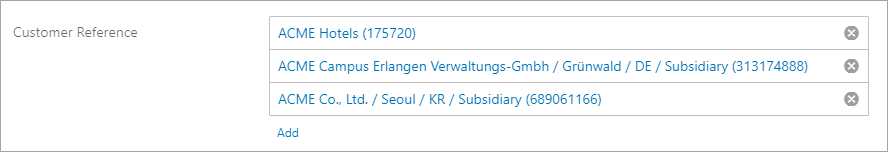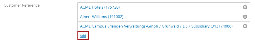 - To add a reference, click the Add link and a typeahead dropdown field will appear.