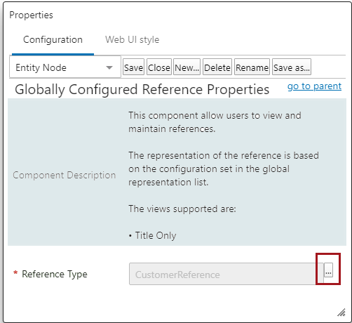 The Globally Configured Reference component is used to display and add / remove references on objects in the Web UI.