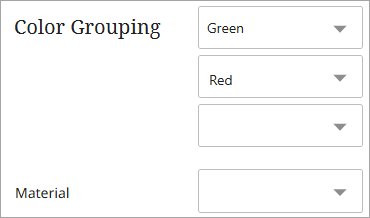When multiple 'Color' value combinations should trigger the conditional display of the 'Material' attribute, a Grouping Option must be created for each of the combinations.