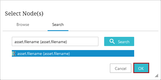 - Use the 'Search' or the 'Browse' option to select the asset metadata attributes that will appear in the screen and click 'OK.'