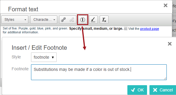 If the footnote tag does not already exist, one can be created in the workbench and will be available in the Insert/Edit Footnote > Style dropdown list within Web UI. For more information on how to add a footnote tag, refer to the Tags topic of the System Setup documentation.