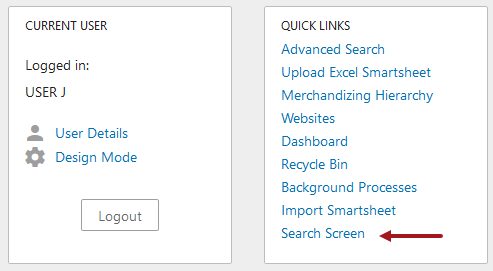 On the homepage, verify the new Search Screen option displayed in the Links widget.