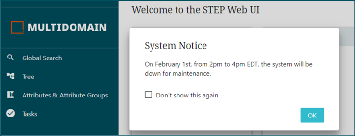 For users to be better prepared, an announcement can be configured by admin users prior to the maintenance date. The announcement will be displayed when users log in to Web UI to notify them of an upcoming maintenance. For example: