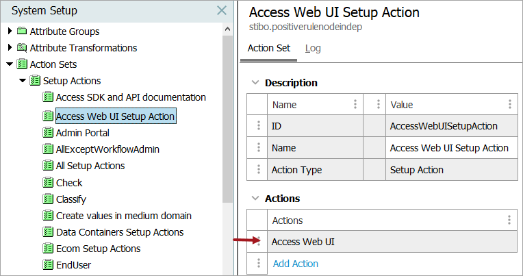 1. Create a 'Setup Action' specifically for 'Access Web UI.' For more information, refer to the Web UI Getting Started topic in the Web User Interfaces documentation.