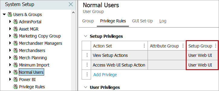 3. Configure the Web UI Setup Group in the User Group's 'Privilege Rules' tab.