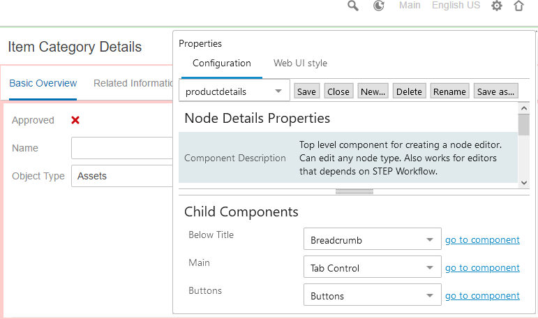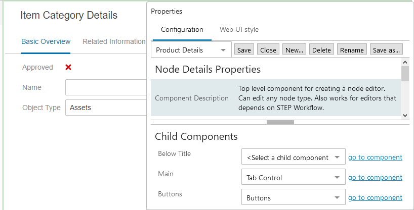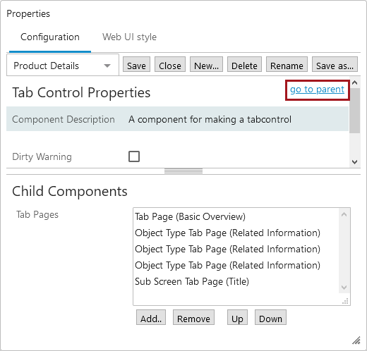 - If the child component list only allows for one component, a 'go to component' link is available next to the component listed in the child components area: