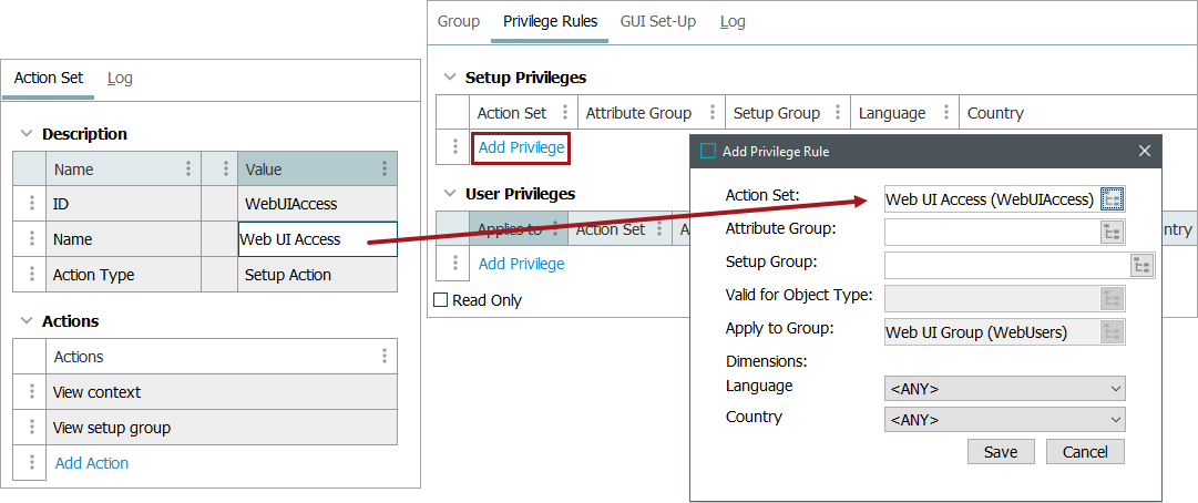 - Click on the new action set that was just created (Web UI Access) and go to the Action Set tab.