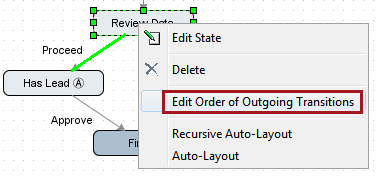 1. Set the order in which outgoing transitions are attempted by right-clicking on the state that has the multiple transitions with the same name coming out of it, and selecting Edit Order of Outgoing Transitions.
