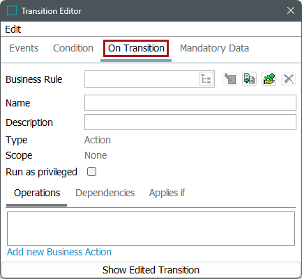 If a script exception is thrown during the transaction, or the assignee for the Edit state cannot be set, the entire transaction including any changes made is rolled back