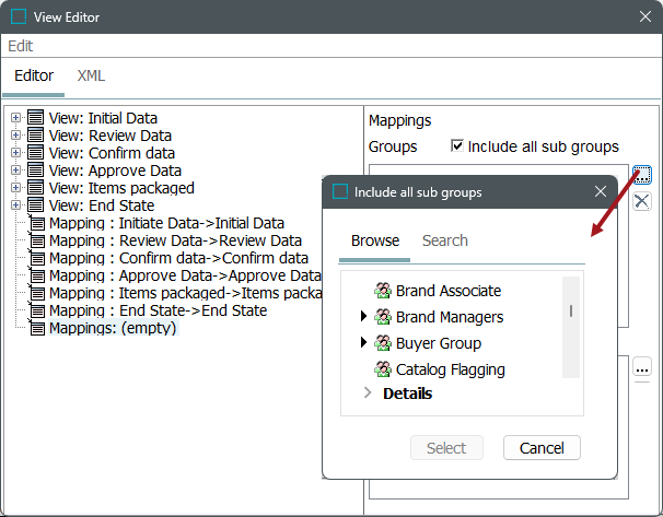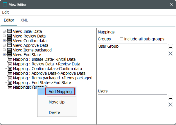 To create user / user group specific mappings, right-click the left panel in the View Editor, and select Add Mapping Group.