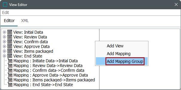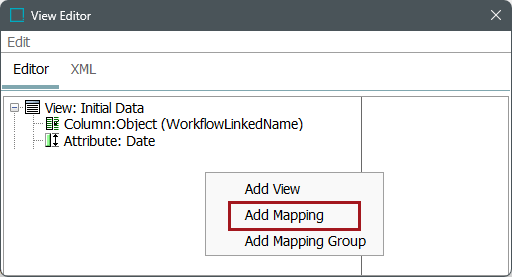 To add mapping to a view, right-click anywhere on the left hand side of the editor panel and select Add Mapping.