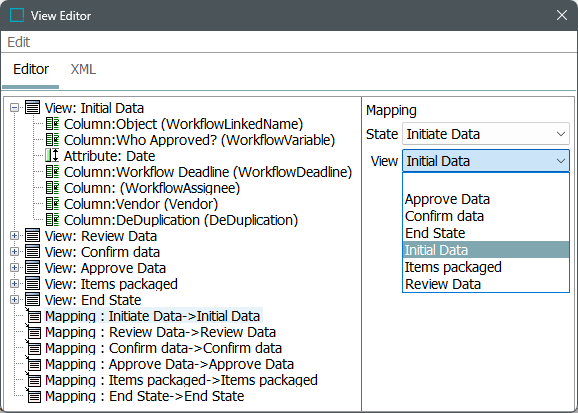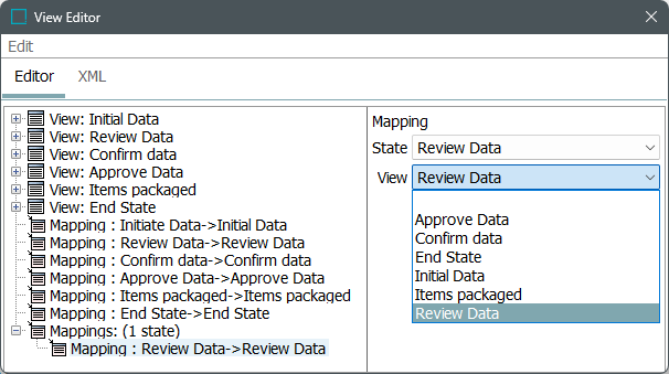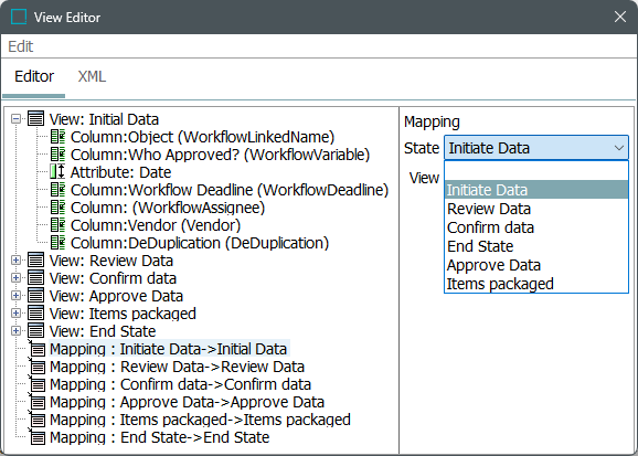 Select the workflow for which view and mapping is being created and expand the section. Only the states for which a mapping was created are visible.