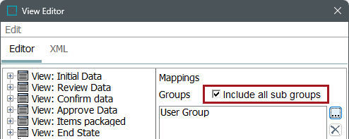 Check the Include all sub groups box if subgroups within the group, as well as direct users in the group, should have access to the view.