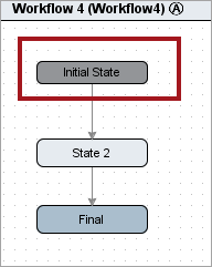 The Initial State, represented by a slightly darker colored state, signals to an object entering the workflow where to start. This could be in a simple workflow, such as the one pictured below, or it could be in regards to telling an object which state to start with when entering a cluster. There can only be one outer Initial State for the general workflow, and there can only be one Initial State inside each cluster. An outer layer Initial State does not have an incoming transition, only an outgoing transition. This outer Initial State signals to the object / task entering the workflow where to start. Once an object knows what state to start with, the workflow can progress.