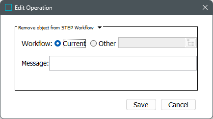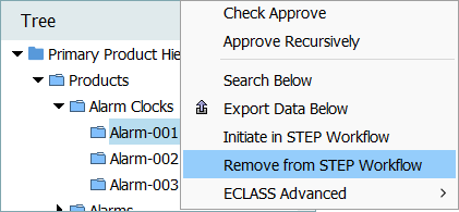 If a user wants to remove a single object from a workflow, and they have the 'Remove Items from STEP Workflow' privilege, this can be accomplished via the Remove from STEP Workflow context menu option on the object.