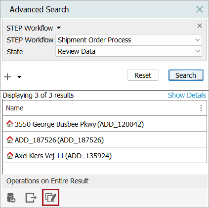 - From the two dropdown menus, select the desired workflow and then specify which state all objects are to be removed from. Click Search when finished.