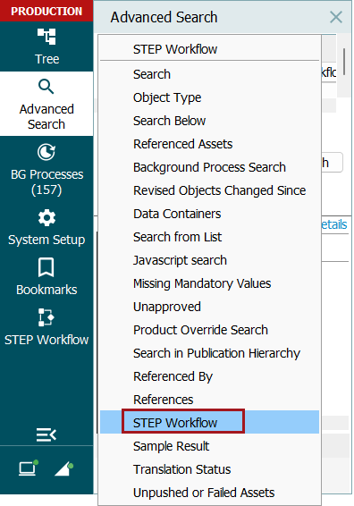 - Navigate to the Advanced Search tab and from the Search dropdown select STEP Workflow.