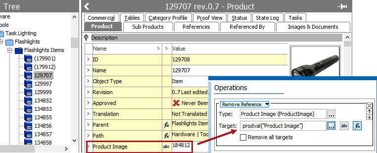 When the bulk update runs, it uses function to determine the value of the attribute, to find which reference to remove from the Product Image type.