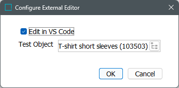 Test Object - only enabled when the 'Edit in VS Code' checkbox is checked. Click the selector button (