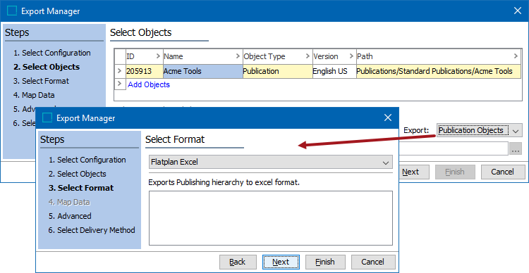 For step-by-step instructions on how to export a Publication Excel or Flatplan Excel spreadsheet from a Flatplanner publication in STEP, refer to Exporting a Publication Excel Sheet in the Publisher (Adobe InDesign Integration) documentation.