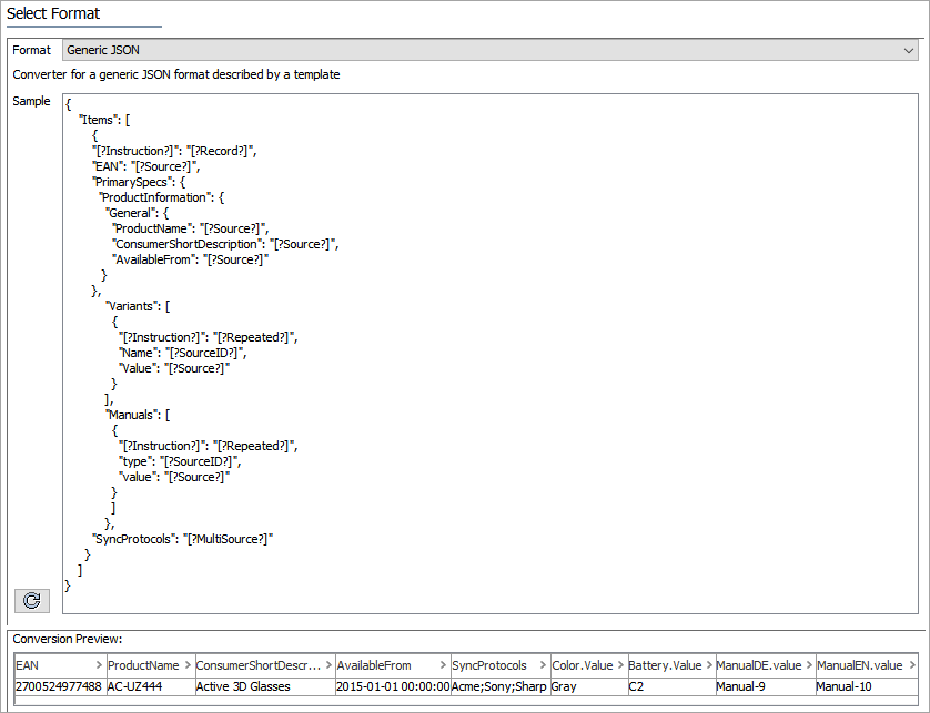 Using the Import Manager, this example demonstrates how to take a JSON input document to create a template, then modify the template to resolve errors and accurately read the input, and prepare the data for mapping.