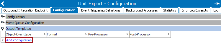 On the OIEP, open the Configuration tab. Under the Output Templates section, click the Add configuration link.