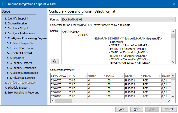 This format requires creating a data map between STEP and the data being processed, and may also include data transformations. For details, refer to Data Mapping.