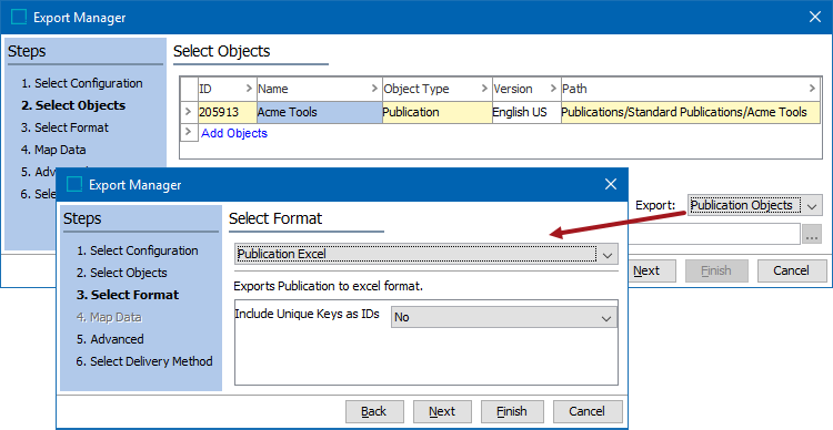 For more information on the Publication Excel export process, refer to Exporting Publications in Excel.