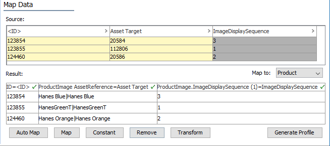 Columns that include Predefined Header Text can be automatically mapped as defined in the Inbound Map Data - Auto Map topic. For the sample below, this includes the <ID> column.