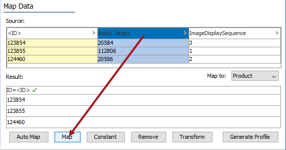 - Map the source ID or key column using the Auto Map button, or manually. For more information, refer to the ID or Key - Map Inbound topic.