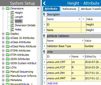 - Width attribute with the value aspect of 'Base Unit ID' aspect is 'unece.unit.MTR.' Since attribute value uses the 'ft' unit, and it is associated with the meters base unit, the meters ID is used.