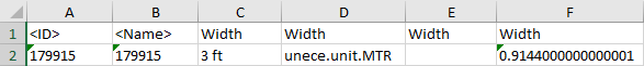 - Width attribute with the value aspect of 'Base Unit Value' aspect is '0.9144.' The attribute value is converted from 3 ft to the corresponding number in m, so the foot conversion of .3048 is multiplied by the attribute value of 3.