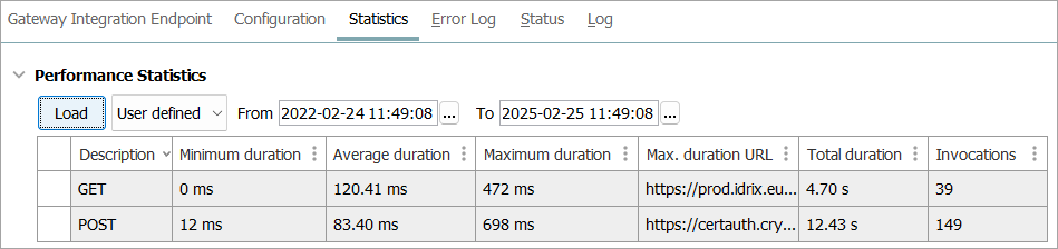 Gateway Integration Endpoint Statistics
