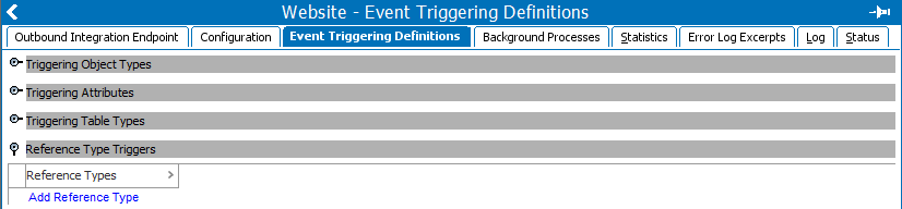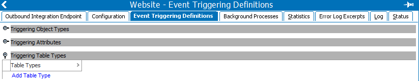 Triggering object types are used to filter the data being monitored by the OIEP. For example, if you are only interested in exporting data when a change is made on a specific object type, there is no reason for the OIEP to listen to events happening on other object types. Setting a trigger on only the required object type reduces the load on the OIEP.