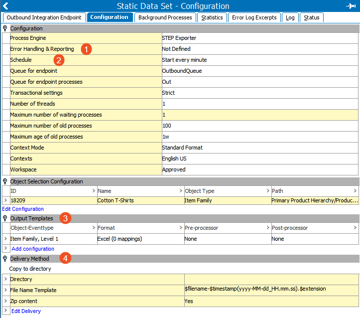 After completing the Outbound Integration Endpoint wizard, for a Select Objects OIEP using the STEP Exporter process engine, the OIEP editor includes additional parameters that must be set manually before the OIEP can run.